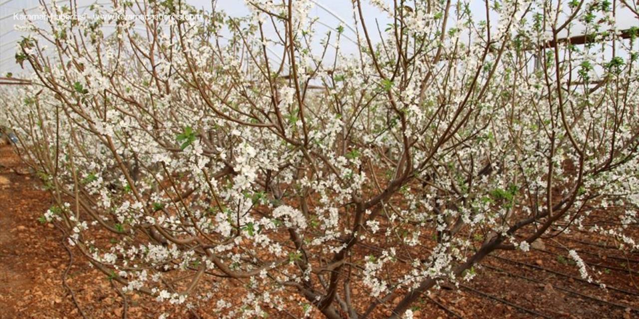 Mersin'in Erdemli ilçesinde örtü altı erikler, yüksek hava sıcaklığı nedeniyle erken çiçeklendi.