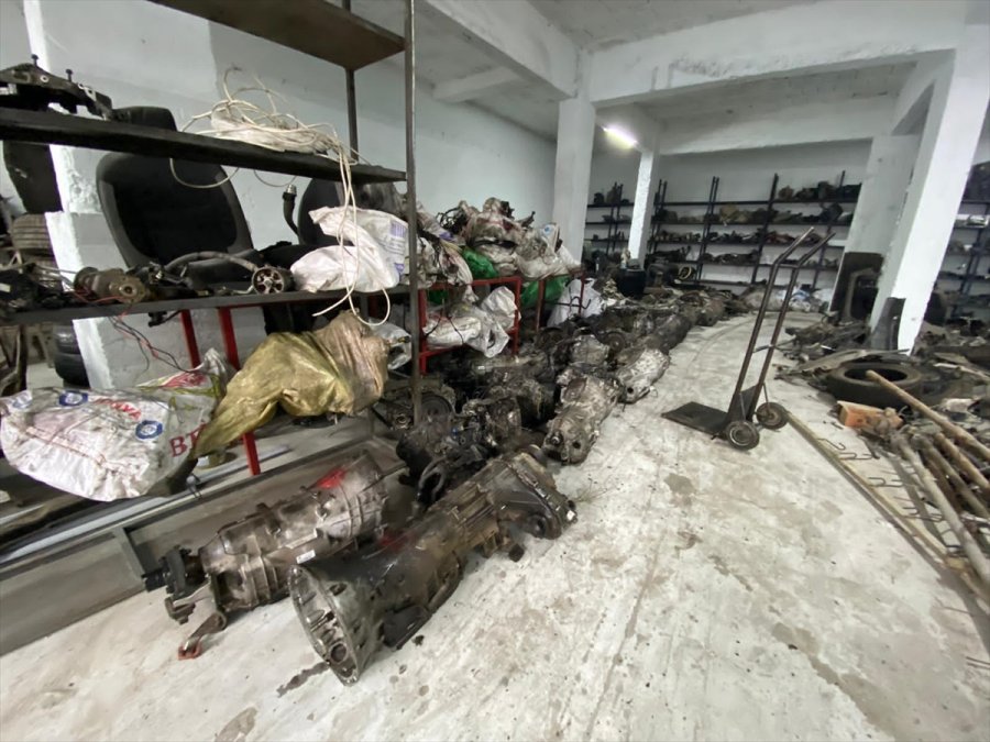 Şüpheliye ait depoda yapılan aramada 600 bin lira tutarındaki 50 şarj motoru, 50 marş motoru, 30 otomatik şanzıman, 35 araç turbosu, 30 manuel şanzıman, 30 çuval bakır kablo, 100 lastikli alüminyum jant ve 50 silindir kapağı ele geçirildi.