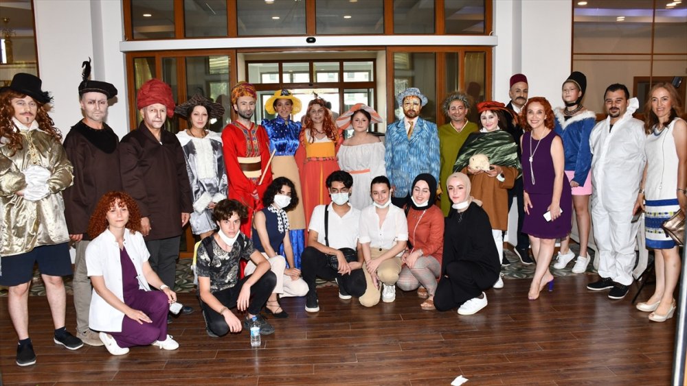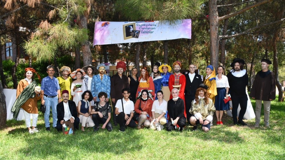 Mersin Olgunlaşma Enstitüsünün kostüm, Güzel Sanatlar Lisesinin de makyaj yapımını üstlendiği etkinlikte sağlıkçılar, canlandırdıkları eserlerle fotoğraf da çektirdi.