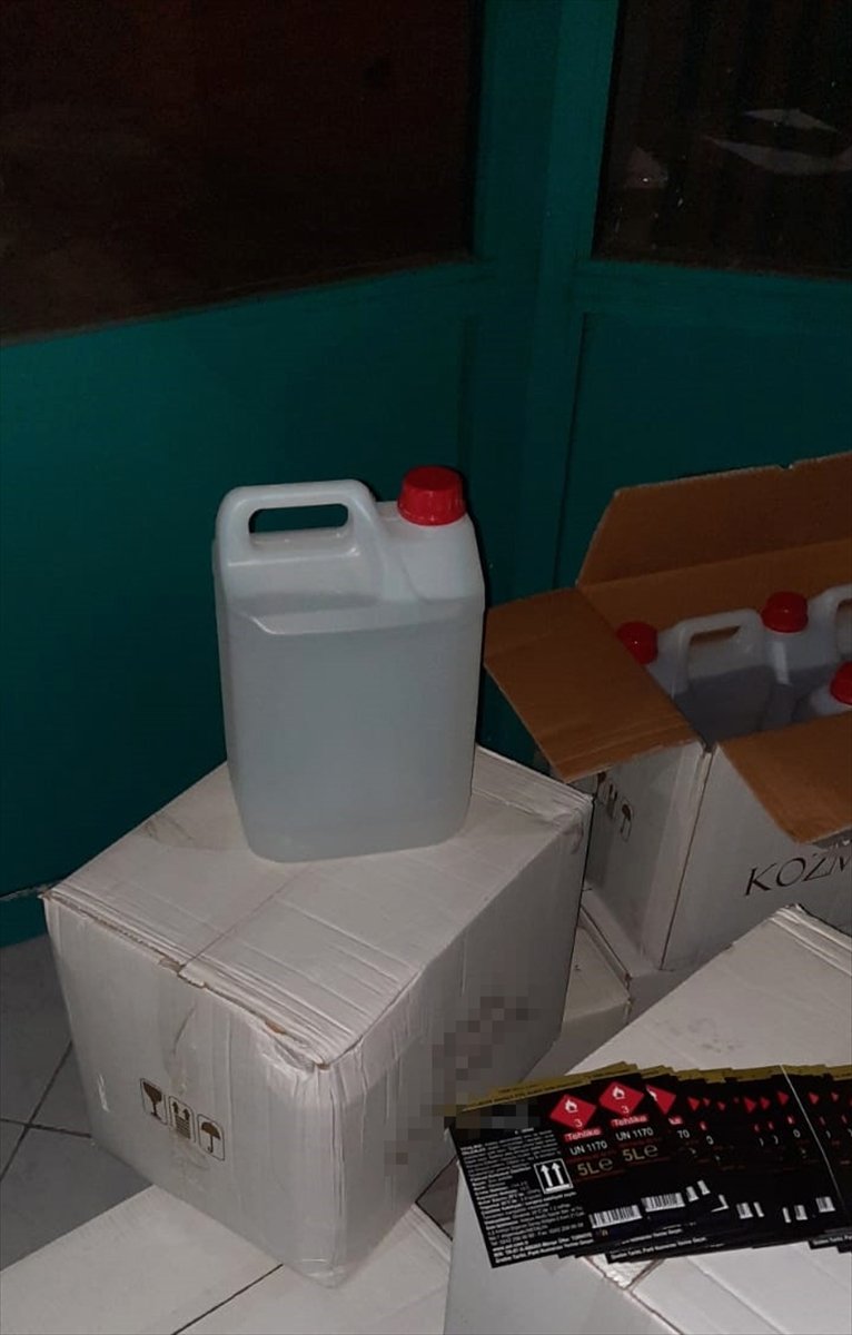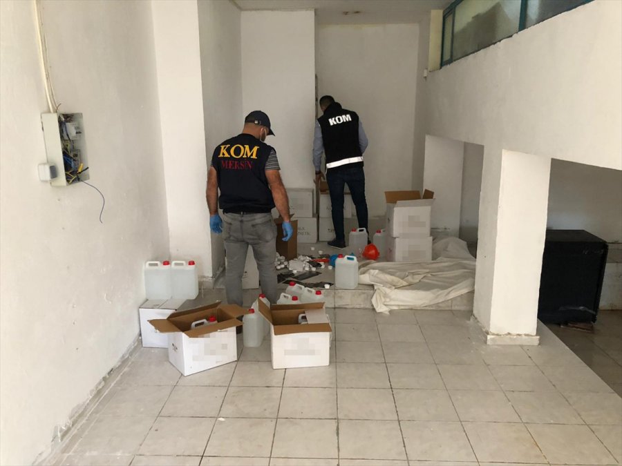 İşletmeye sahte içki sattığı belirlenen M.F'nin de adresine operasyon düzenleyen ekipler, burada 279 litre etil alkol, sahte içki yapımında kullanılan anason, aroma, etiket, kit ve huni ele geçirdi, zanlıyı gözaltına aldı.