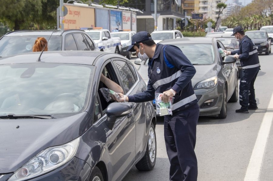 Mersin'de Büyükşehir Belediyesi bünyesinde hazırlanan sağlık paketleri, sokağa çıkma kısıtlamasının uygulanmadığı hafta içi kent trafiğinin yoğun olduğu noktalarda araçlardaki yolculara dağıtılıyor. Sağlık paketleri ile vatandaşlara hijyen desteği verilirken, sağlıkları için evde kalmaları konusuna da bir kez daha dikkat çekiliyor. Yenişehir, Mezitli, Akdeniz ve Toroslar'dan oluşan 4 merkez ilçenin işlek caddelerindeki ışıklarda bekleyen personeller, sabah işe gidiş saatlerinde araçlardaki yolculara içerisinde dezenfektan, sabun ve bilgilendirme broşürünün olduğu sağlık paketlerini ulaştırıyor.