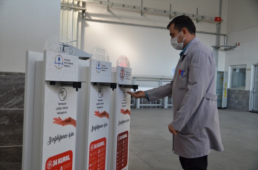 Öğretmenler ve öğrencilerin iş birliğiyle okul atölyelerinde, numune alma kabini, entübe kabini, temassız ateş ölçer, pedallı lavabo sistemi, sensörlü sosyal mesafe koruyucu, pedallı, sensörlü ve duvar tipi dezenfektan makineleri, yüz koruyucu siperlik ve sensörlü sabunluk sistemi olmak üzere on kalem ürün tasarlanarak seri üretime geçildi.