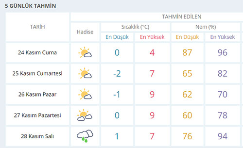 Yapılan son değerlendirmelere göre, Marmara'nın doğusu, Karadeniz, İç Anadolu'nun kuzey ve doğusu ile Doğu Anadolu Bölgesi ve Siirt çevrelerinin yağışlı geçeceği tahmin ediliyor. Yağışların Karadeniz kıyı kesimi, Marmara'nın kuzeydoğusu ile Siirt çevrelerinde yağmur ve sağanak, diğer yerlerde karla karışık yağmur ve kar şeklinde olması bekleniyor.