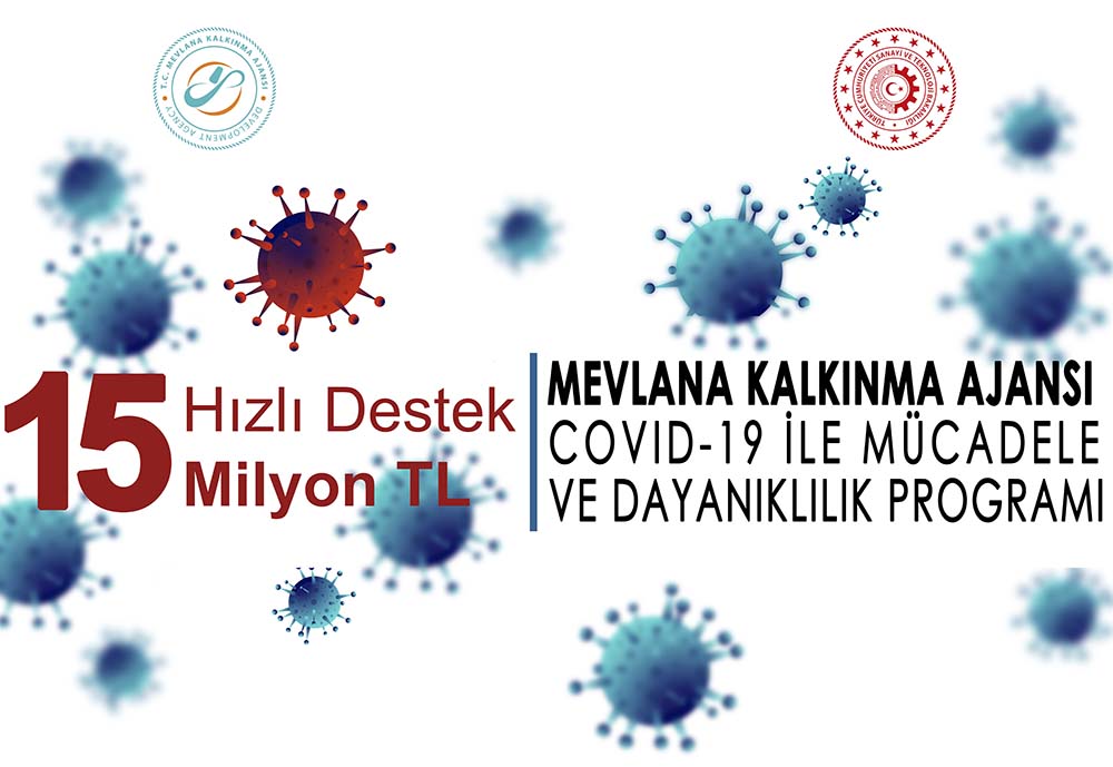 Sanayi ve Teknoloji Bakanlığı koordinasyonunda TR 52 Karaman-Konya Bölgesi’ndeki KOBİ’lere, kamu kurum ve kuruluşlarına, sivil toplum kuruluşlarına yönelik olarak uyguladığı mali ve teknik destek programları ile bugüne kadar bölgede eş finansmanlar ile birlikte 350 Milyon TL’lik bir yatırımı harekete geçiren Mevlana Kalkınma Ajansı, ülkemizin COVID-19 salgını ile mücadelesine ve salgının yayılımının en aza indirilerek kontrol altına alınmasına katkı sağlamak, başta risk altındaki gruplar olmak üzere toplum sağlığının korunmasına ve salgının olumsuz sosyoekonomik etkilerinin hafifletilmesine destek vermek amacıyla “COVID-19 İle Mücadele ve Dayanıklılık Programı” ilan etti.