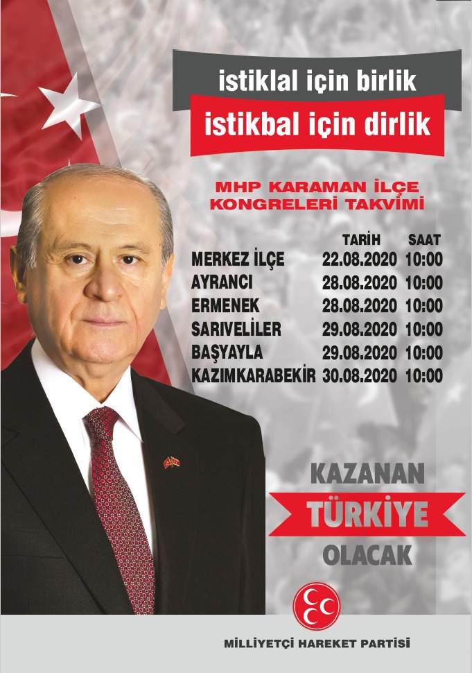 Milliyetçi Hareket Partisi Karaman Merkez ve ilçeler için kongre takvimi netleşti.