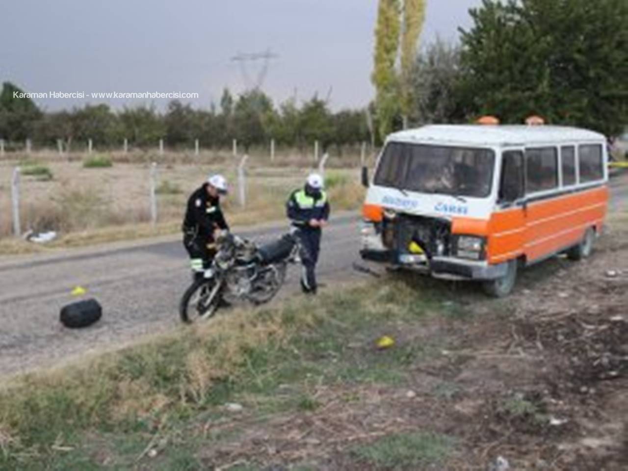 Karaman’da içinde tarım işçilerinin bulunduğu minibüsle çarpışan motosiklet sürücüsü hayatını kaybetti.