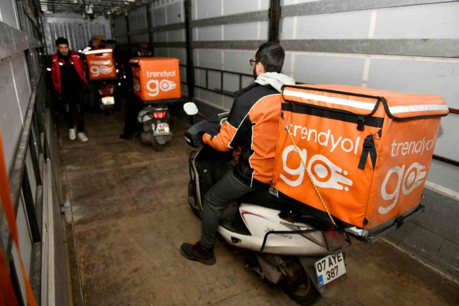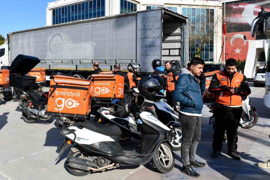 Antalya'da, motokuryeler Hatay'da büyük yardım araçlarının giremediği noktalara insani yardımları ulaştırmak için yola çıktı. Kuryelerin motorları Muratpaşa Belediyesi'nin tır'ıyla bölgeye ulaştırılacak.