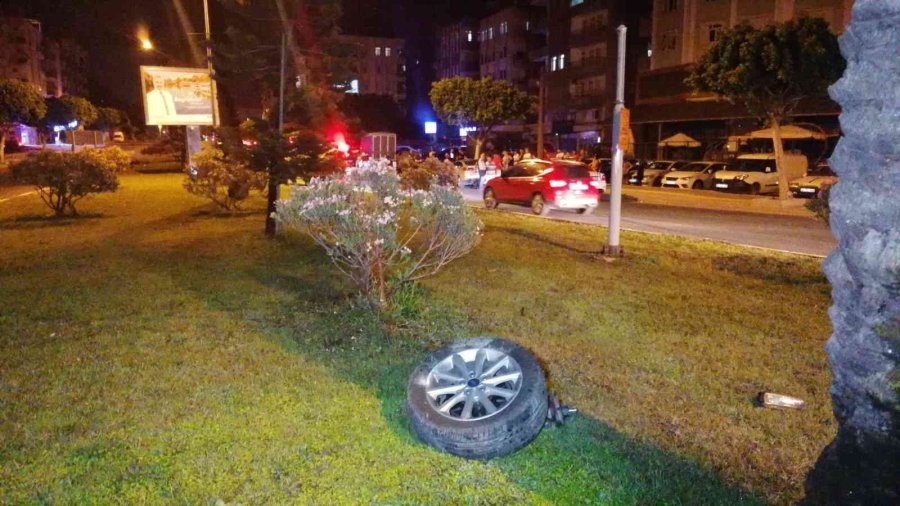 Motosikletle Çarpışan Otomobilin Ön Tekeri Koptu:2 Yaralı