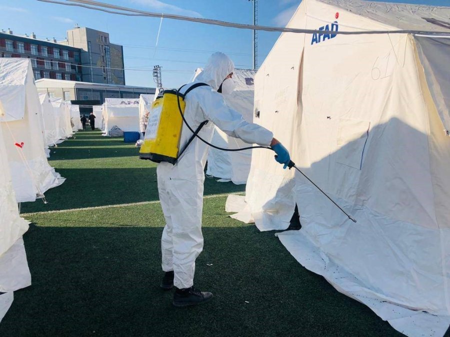 Kahramanmaraş merkezli yıkıcı depremlerin ardından depremzedelerin her türlü ihtiyacını karşılayan Mehmetçik, çadır kentlerde sağlık sorunlarının önüne geçebilmek için ilaçlama faaliyetlerini gerçekleştiriyor.