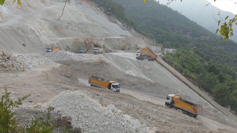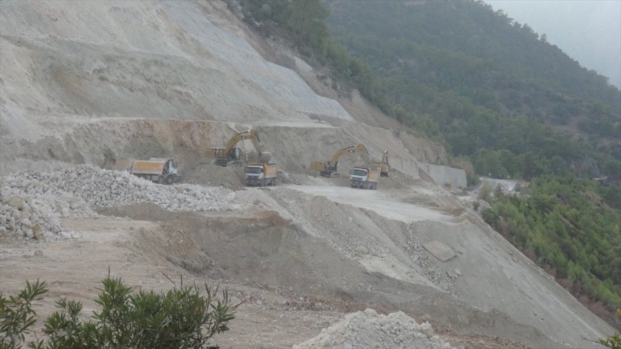 Silifke-Mut kara yolunun 32. kilomteresinde ağustos ayında meydana gelen heyelan dolayısıyla kapanan yolun yeniden trafiğe açılması için çalışmalar yürütülüyor.