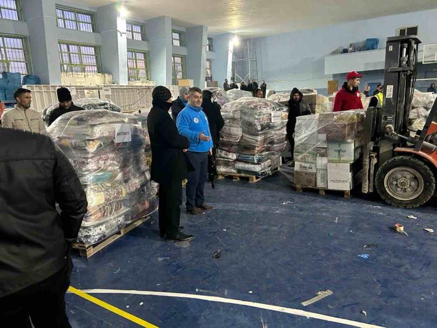 3 tır malzeme toplanıldığını belirten İlçe Kaymakamı Batuhan Bingöl, "Yardım toplama işimiz devam ediyor. Toplanan yardımları tüm deprem bölgelerine göndermeye devam edeceğiz" ifadelerini kullandı.