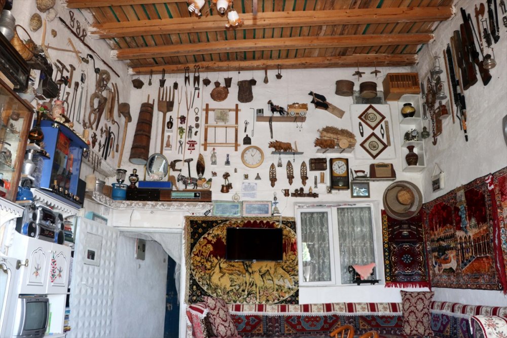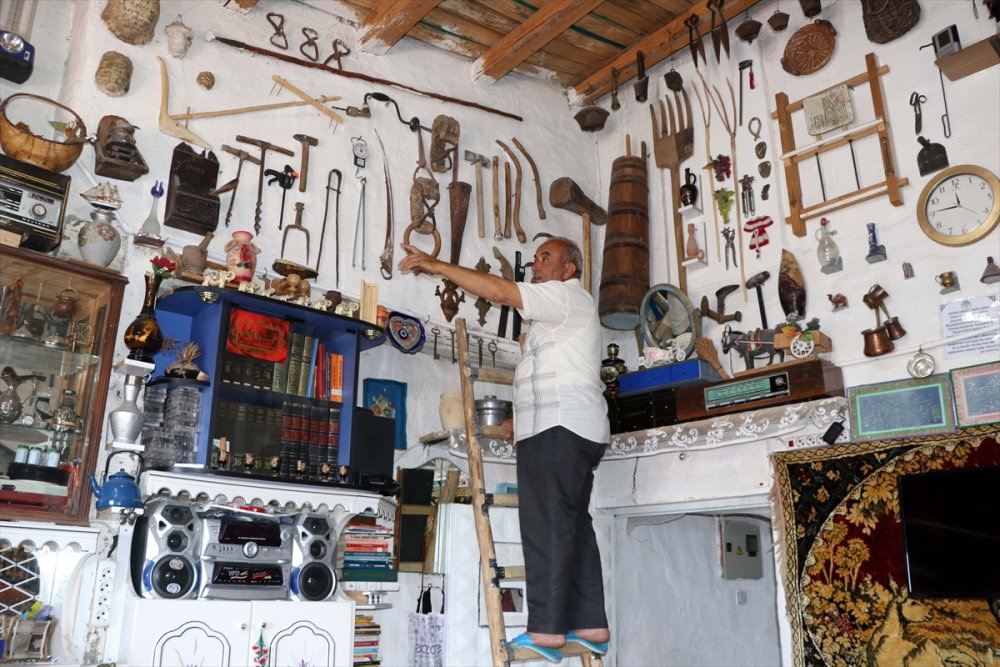 Kayseri'de yaşayan Osman Sarıçiçek, bir müze ziyaretiyle başladığı antika eşya toplama hikayesinde evinin salonunu tarım aletleri, mutfak ve giyim eşyalarıyla adeta müzeye dönüştürdü