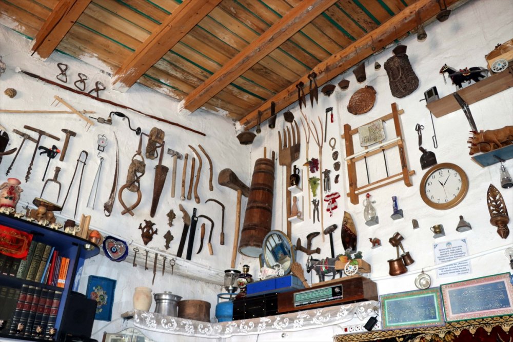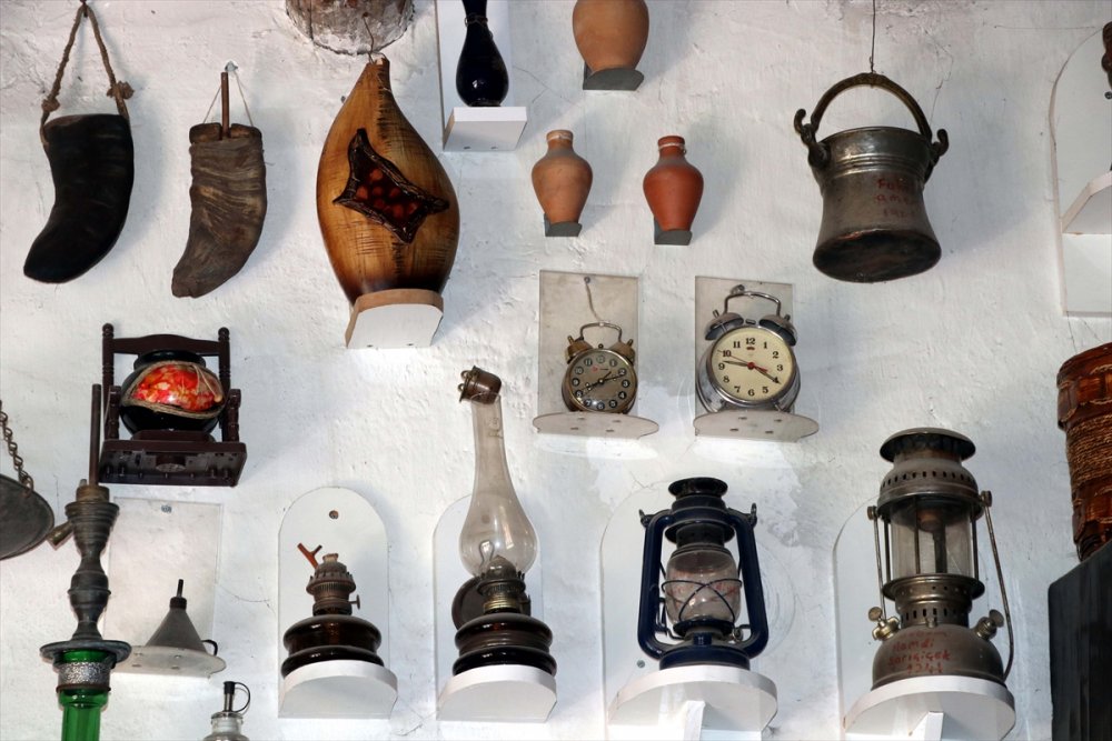 İlçedeki evinin salonunu zamanla müzeye dönüştüren Sarıçiçek, yaklaşık 400 tarihi eşyayı sergiliyor.