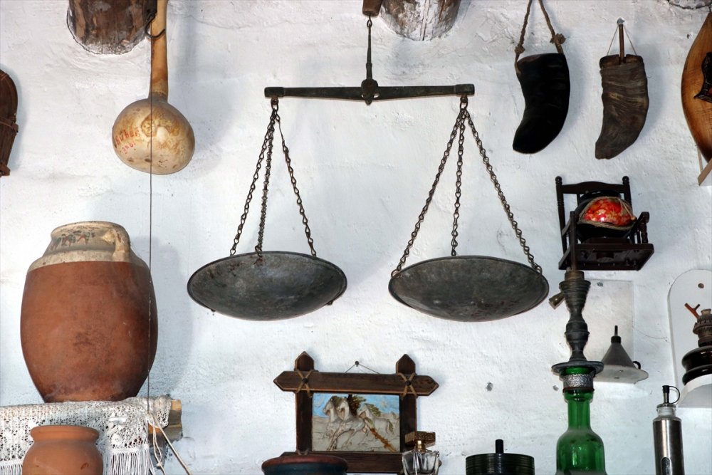 "Nerede denk gelirse kimden bulduysam bu eserleri aldım. Burada bir eser var. Demir kayış. Bunun için bir evin çatısını bir gün çalışarak tamir ettim ve bu eseri öyle satın aldım. Yeni nesle sorsak kağnı nasıl olur desek bilmez. Eskinin saklama kapları, çömlek, küp, gaz lambası, çıra, lüks, el lambası gibi birçok eser var salonumda. Tarihi, evimin içine sığdırdım. Birçok kişi evime gelip bu eserleri istiyor ama vermiyorum. Evimin salonunda fazla yer kalmadı. Kış günü çok gelen oluyor. Oturuyoruz burada, çayımızı içip sohbet ediyoruz."