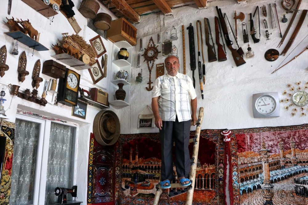 Kayseri'nin Bünyan ilçesinde 62 yaşındaki Osman Sarıçiçek, antika eşyalarla süslediği evinin salonunda adeta tarihi yaşatıyor.