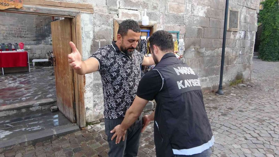 Talas ilçesinde bulunan Osmanlı Sokağı'nda da şok uygulama yapan narkotik polisleri, kimlik kontrolü ile beraber üst araması da yaptı.