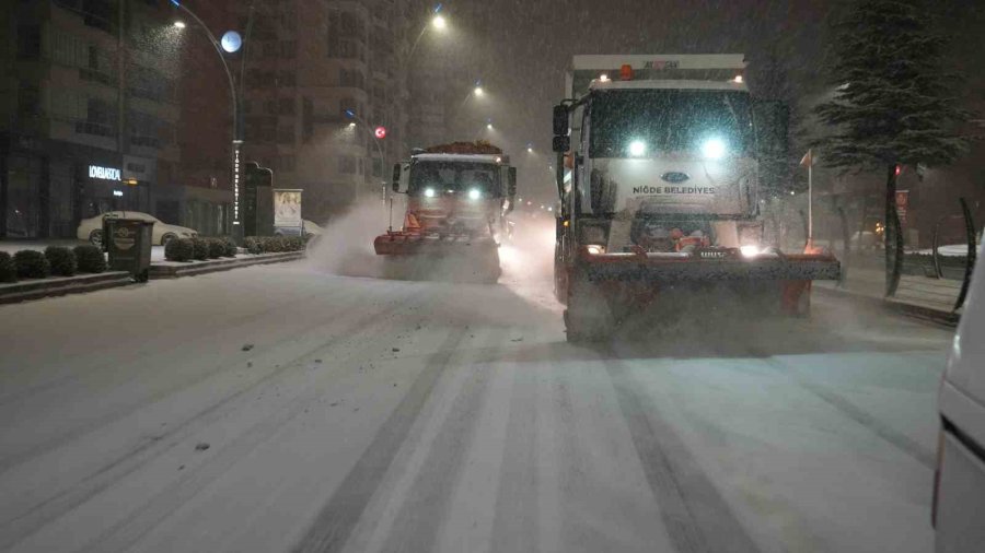 Niğde Belediyesi, kenti etkisi altına alan yoğun kar yağışının oluşturabileceği olumsuzluklara karşı çalışmalarını sürdürüyor. Temizlik İşleri ve Fen İşleri Müdürlüğü'ne bağlı 80 personel, gece gündüz demeden sahada görev yaparak yolların ve kaldırımların açık kalmasını sağlıyor. Kentin ana arterleri, caddeler, sokaklar ve kaldırımlarda kar küreme, tuzlama ve solüsyon çalışmaları titizlikle yürütülüyor.