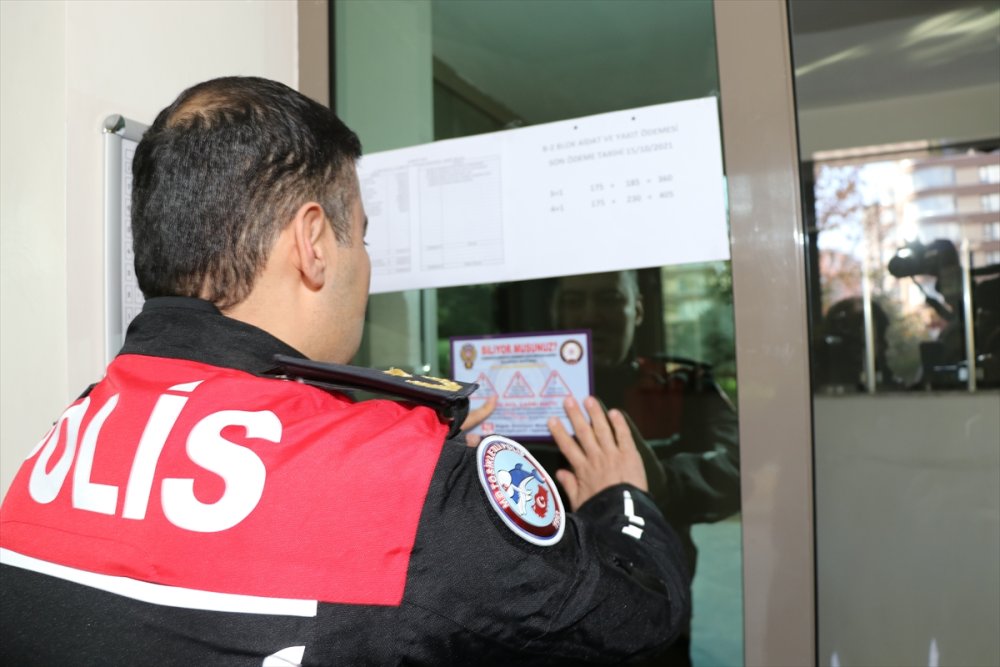 Niğde'de Polis Ekipleri, Hırsızlara Karşı Bina Girişlerine Bilgilendirici Çıkartma Yapıştırdı