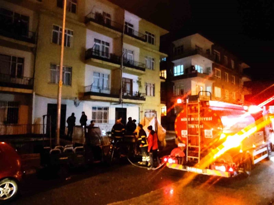 Niğde'de 4 katlı apartmanın 1. katında çıkan yangın paniğe neden oldu. Yangında 9 kişi dumandan etkilendi.