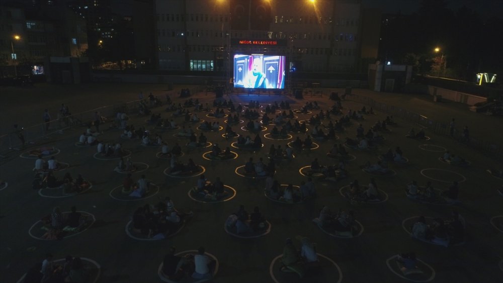 Niğde Belediyesince, yeni tip koronavirüs (Kovid-19) salgını sonrası yeni normalleşme sürecinde açık havada "minderli sinema" etkinliği yapıldı.