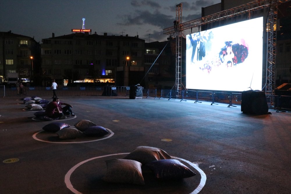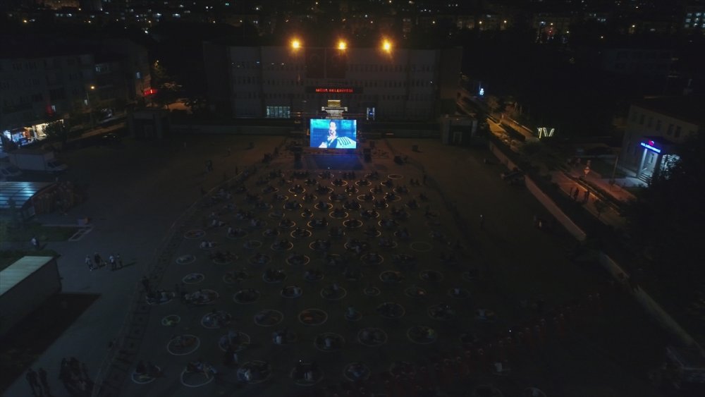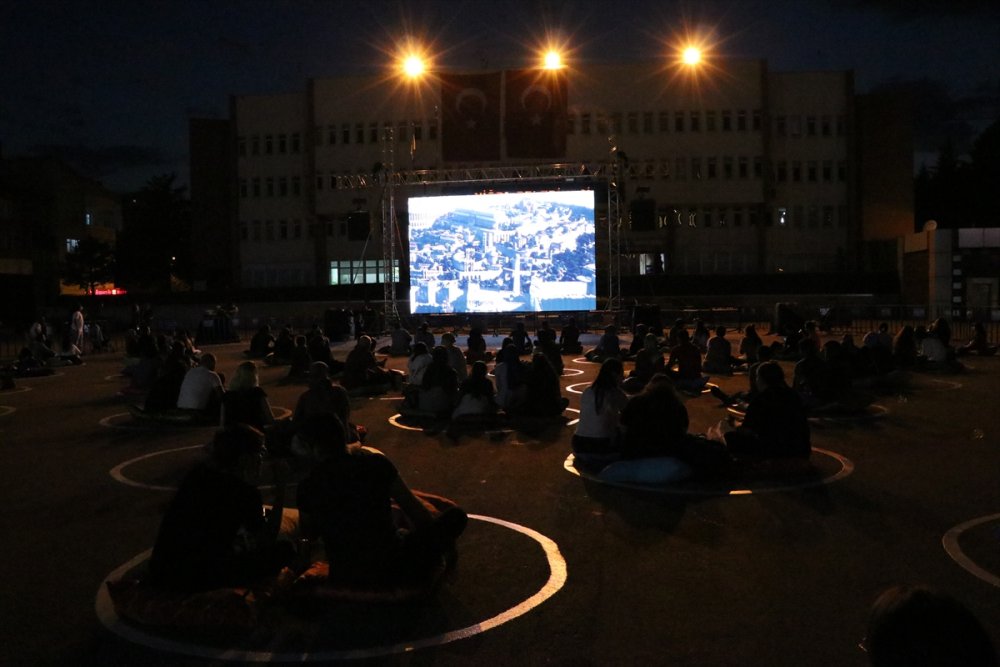 Ömer Halisdemir Meydanı'nda düzenlenen etkinlikte, kurulun dev ekranın karşısına, 2 metre aralıklarla çizilen yuvarlakla belirlenen alanlara 2 ve 3 kişilik minderler koyuldu. Ekipler, sinema izlemek için gelenleri, ateşini ölçerek alana aldı, maskesi olmayanlara maske dağıtıldı. Ayrıca sinema severlere patlamış mısır ikram edildi.
