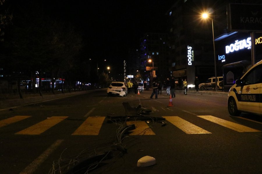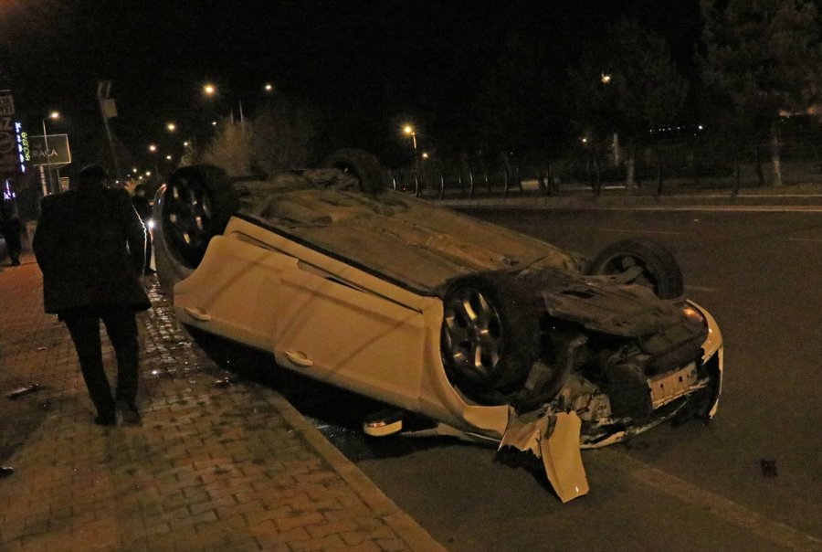Çarpışmanın etkisiyle otomobillerden biri refüje çarptı, diğeri devrildi.