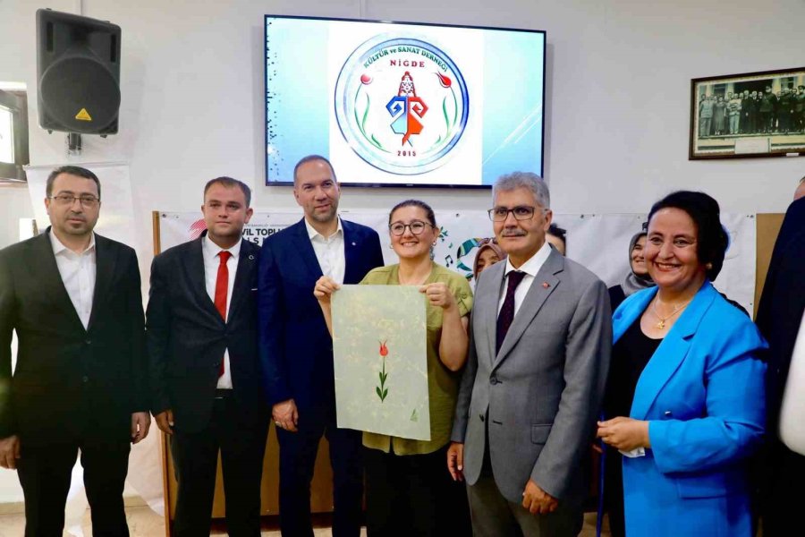 İçişleri Bakanlığı'nın desteğiyle Niğde Kültür ve Sanat Derneği tarafından hayata geçirilen "Sanatın Sesini Duyuyor, Sanat ile Konuşuyoruz" projesi kapsamında hazırlanan sergi, düzenlenen törenle açıldı.