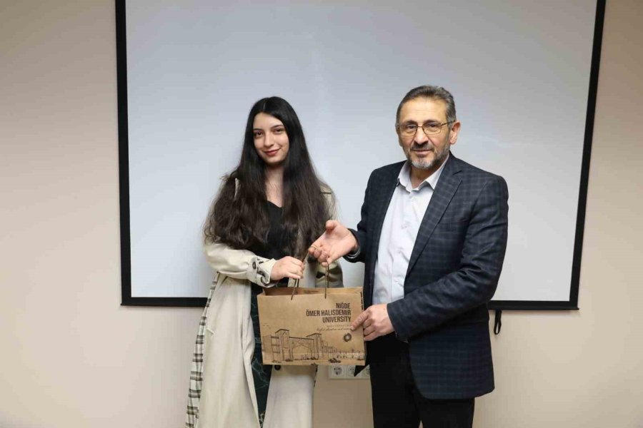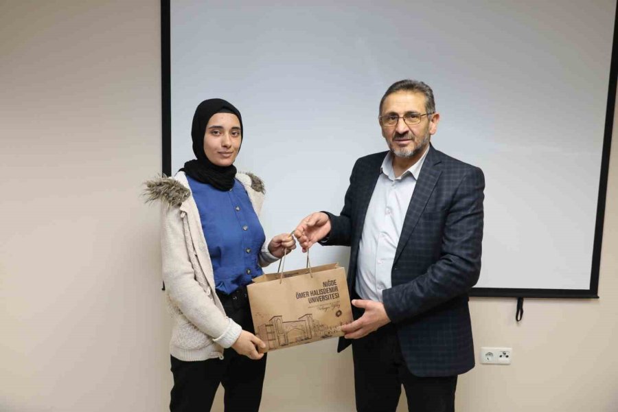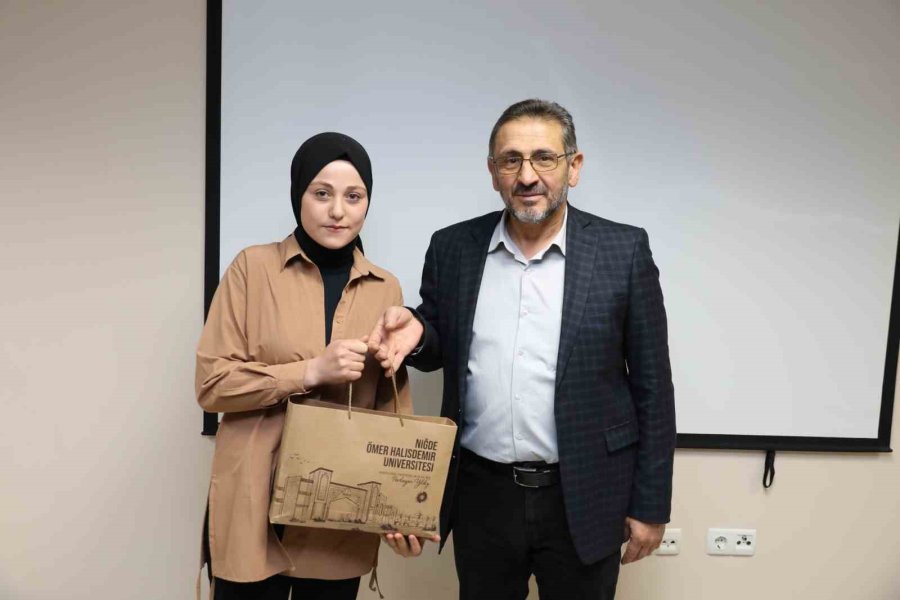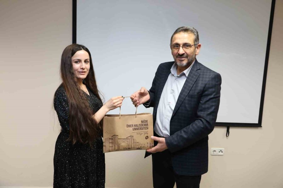 Niğde'de Sabiha Şahenk Kütüphanesinde düzenlenen programa Rektör Yardımcısı Prof. Dr. Recep Çiçek ile Kütüphane ve Dokümantasyon Daire Başkanı Batuhan Taşdurmaz katıldı.