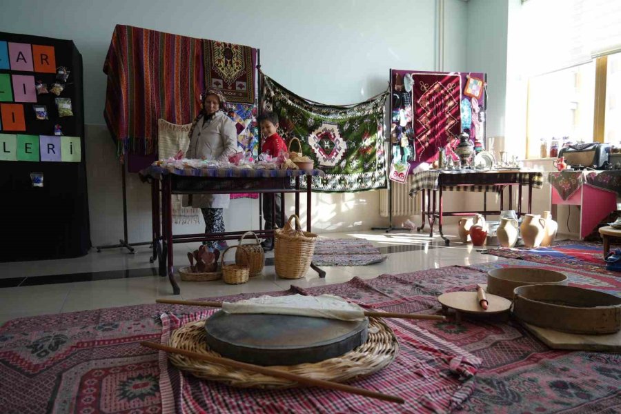 Kültürel zenginliklerin ve yerli ürünlerin yer aldığı sergiye öğrenciler ve veliler büyük ilgi gösterdi.