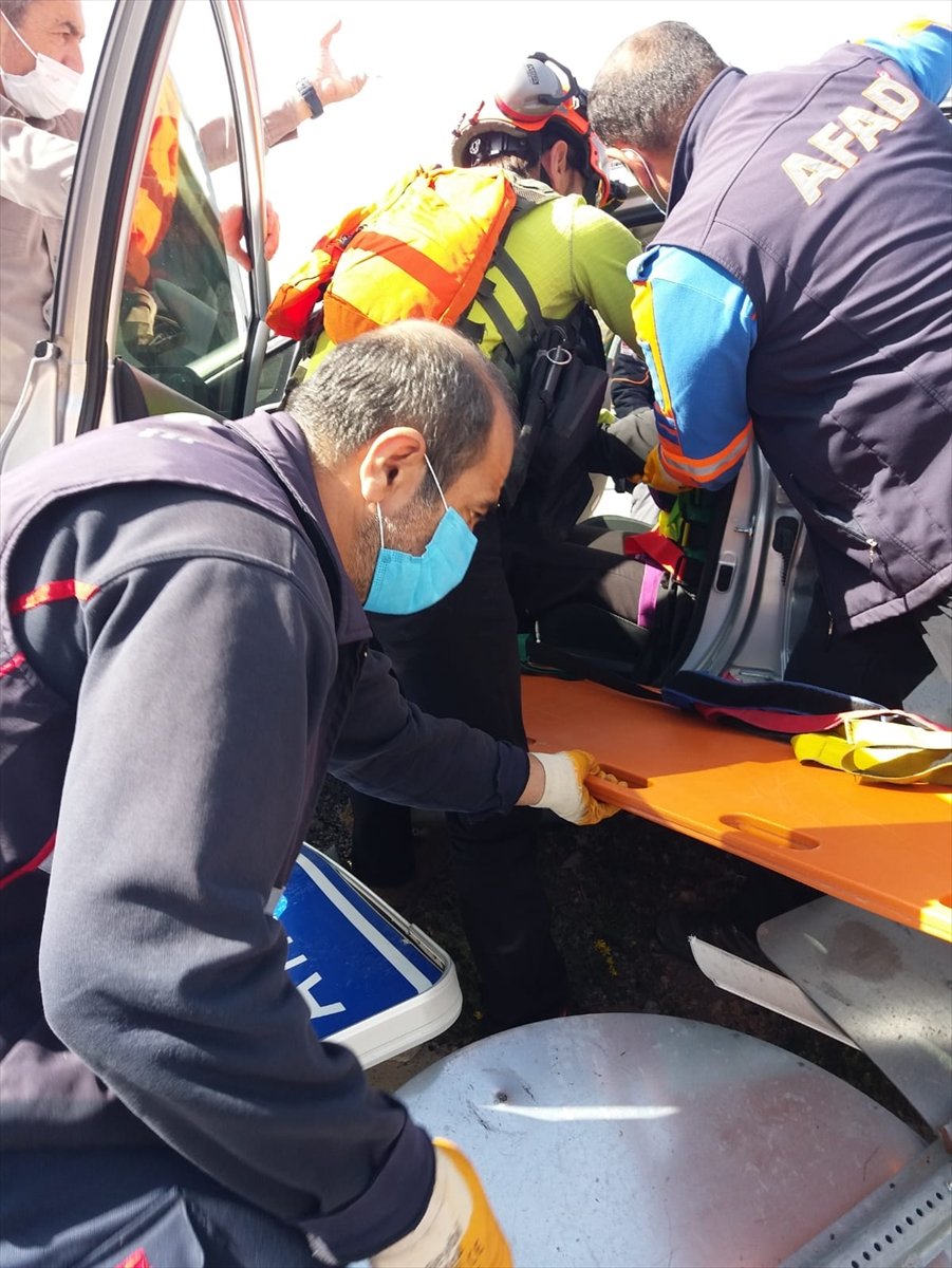 AFAD ve itfaiye ekipleri, otomobilde sıkışan yaralıları çıkardı.