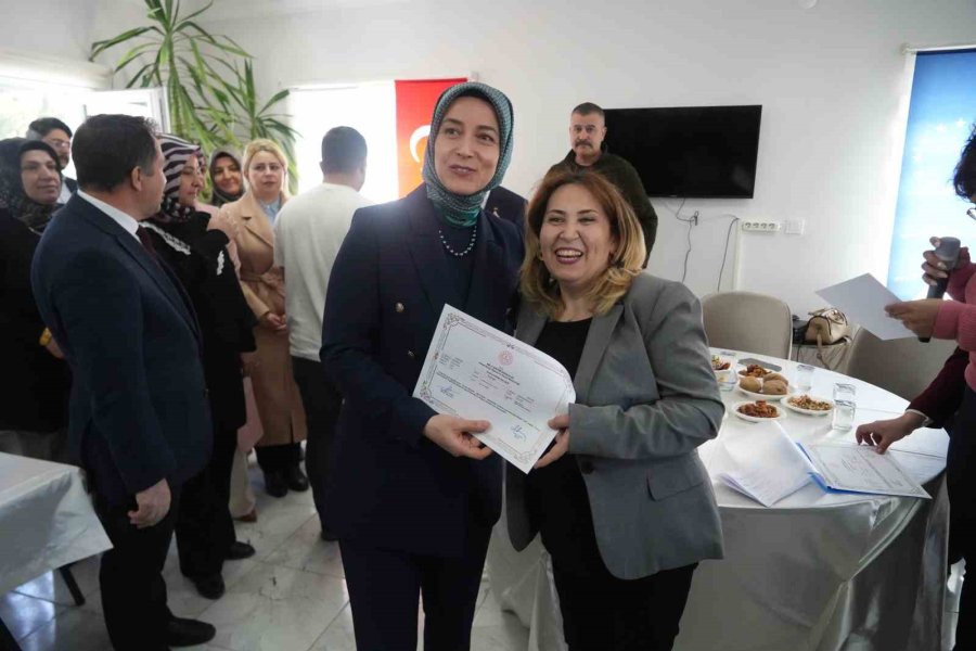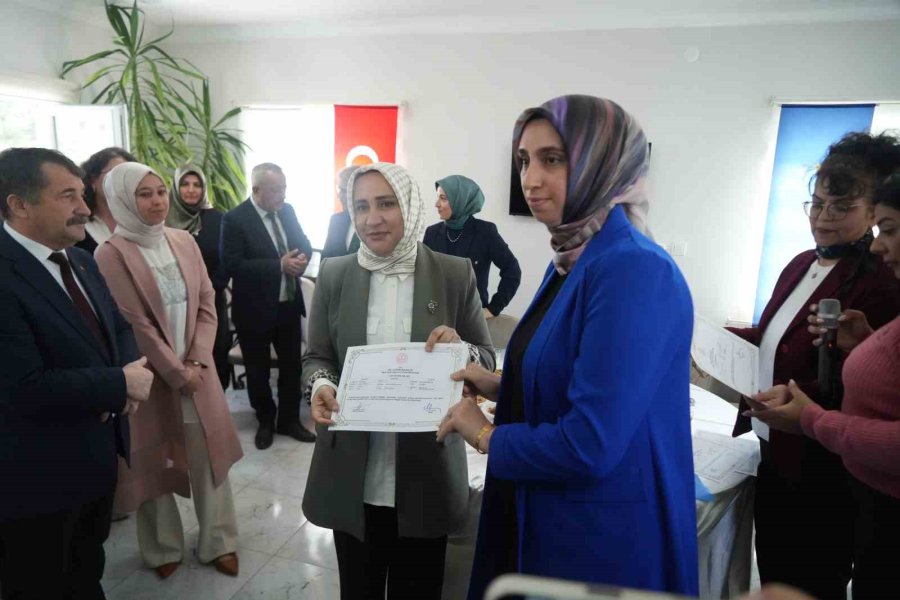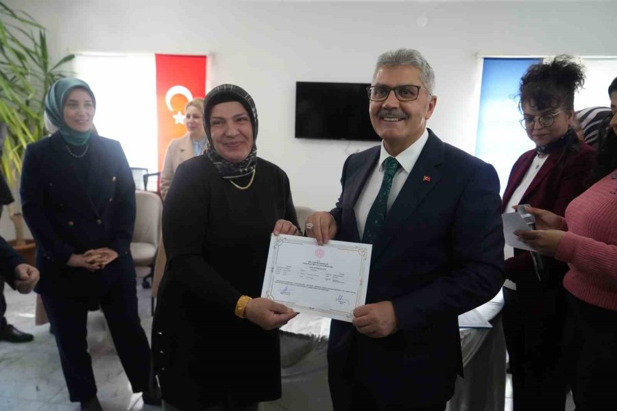Konuşma sonrası Vali Çelik ve protokol üyeleri kursiyerlere sertifikalarını verdi.
