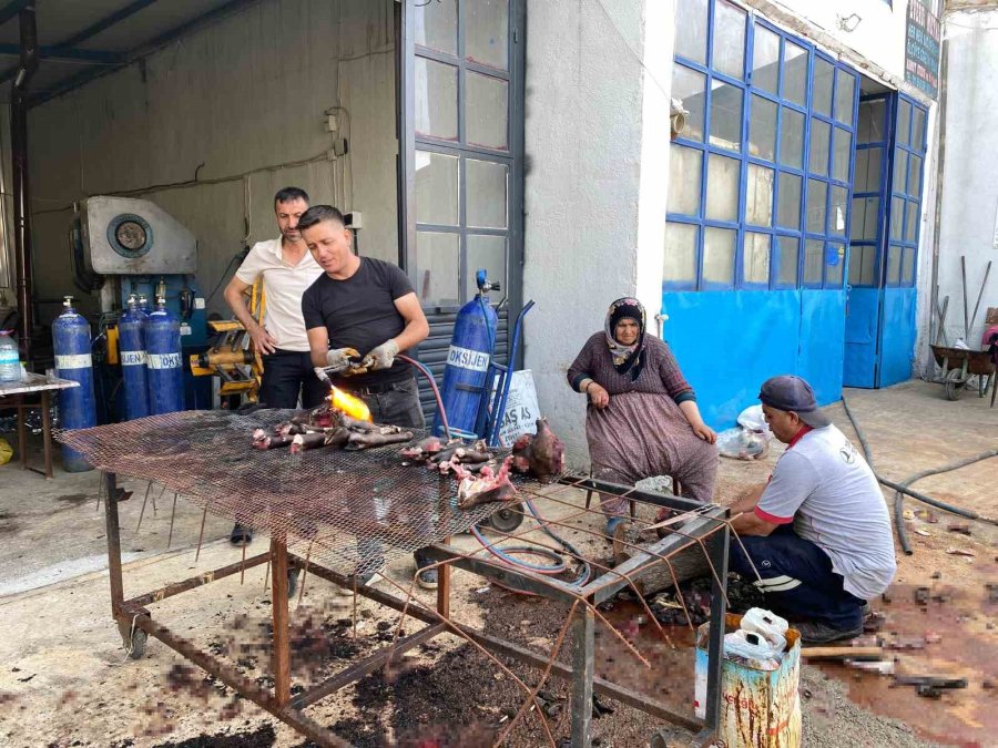 NİĞDE (İHA) – Kurban Bayramı süresince sanayideki metal ustaları kelle ütme mesaisi yapıyor.