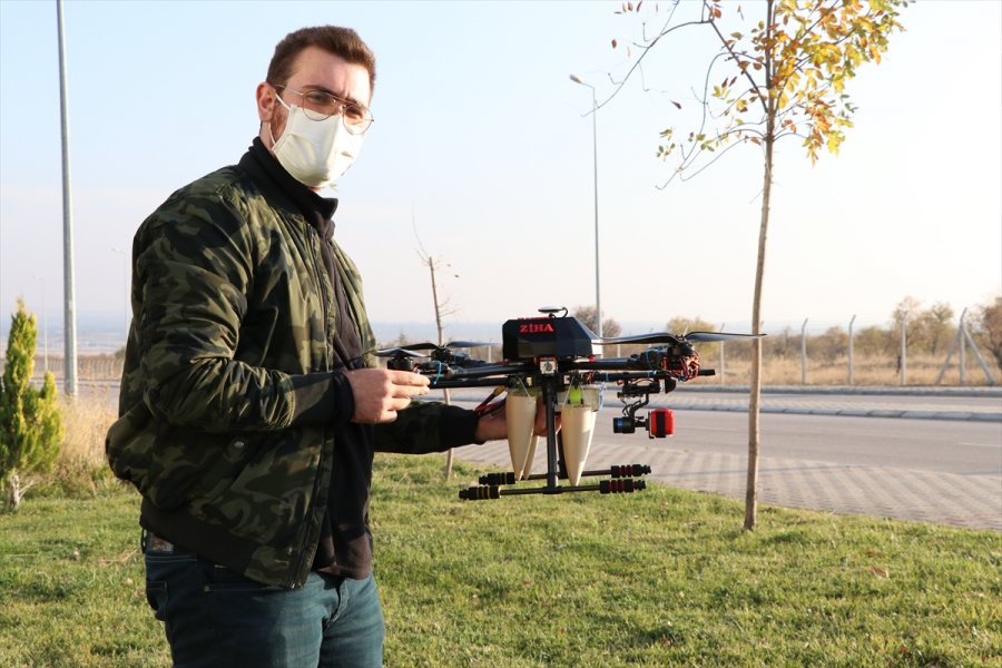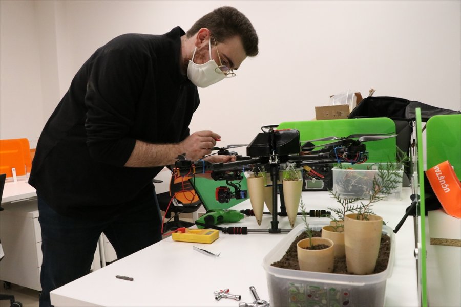 Niğde Teknopark'ta insansız hava araçları üzerine çalışma yapan OSTİM Teknik Üniversitesi Meslek Yüksekokulu Mekatronik Bölümü 2. sınıf öğrencisi Utkucan Uyanık, fidan dikim çalışmalarında kullanılması amacıyla drone tasarladı.