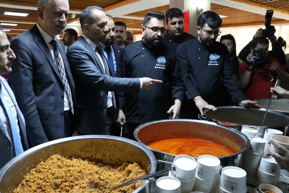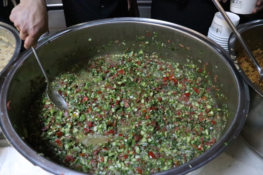 Valilik koordinesinde belediye, Niğde Ömer Halisdemir Üniversitesi, İl Kültür ve Turizm Müdürlüğü iş birliğiyle Sosyal Bilimler Meslek Yüksekokulu uygulama restoranında aşçılık programı öğretim görevlileri ve öğrencilerinin yaptığı tarhana çorbası, üzüm borani, pastırmalı dermason kuru fasulye, ciğerli pilav, bostana salata, aşure ve reyhan şerbeti, katılımcılara ikram edildi.