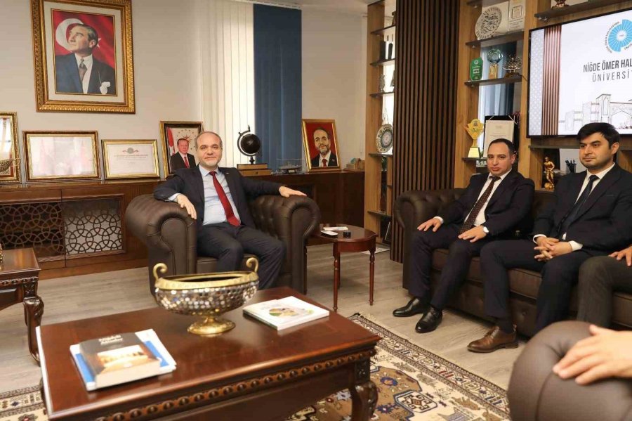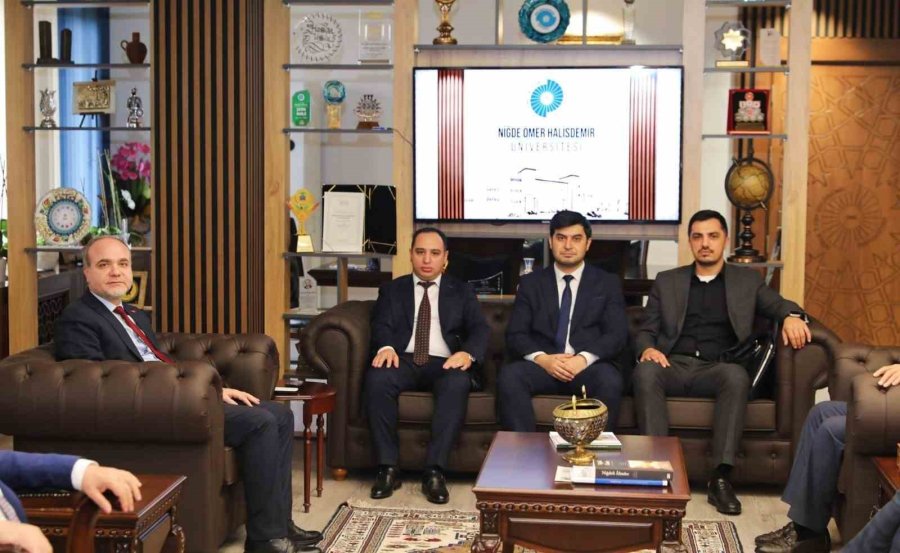 Azerbaycan Cumhuriyeti Savunma Sanayi Bakanlığı Bilimsel Araştırmalar Enstitüsü heyeti, Niğde Ömer Halisdemir Üniversitesi (NÖHÜ) Rektörü Prof. Dr. Hasan Uslu'yu ziyaret etti.