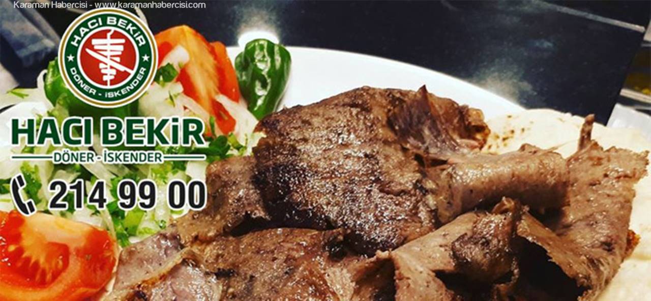 İsmet Paşa Caddesi üzerinde 2.Noter altında (Cambaz Gazi parkı yanı) Karamanlılara hizmet veren Hacı Bekir Döner ve İskender’de taze Torku et ürünleri kalitesini müşterilerine sunuyor.