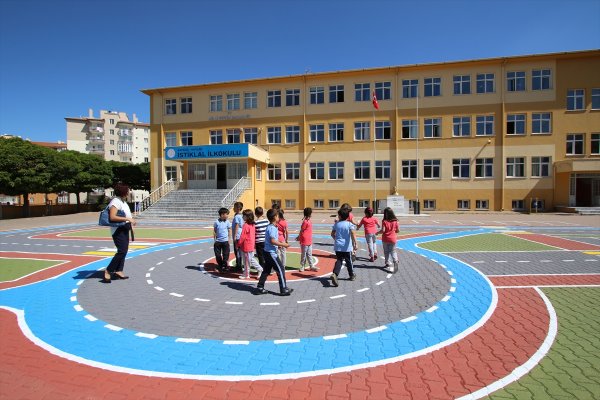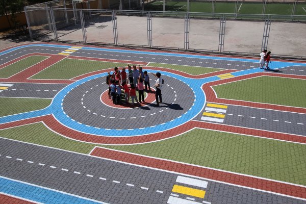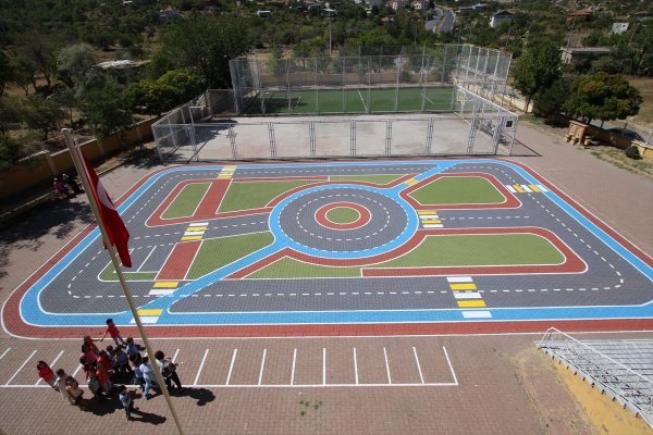 Okul Bahçesi Öğrencilerin "Trafik Eğitim Pisti" Oldu