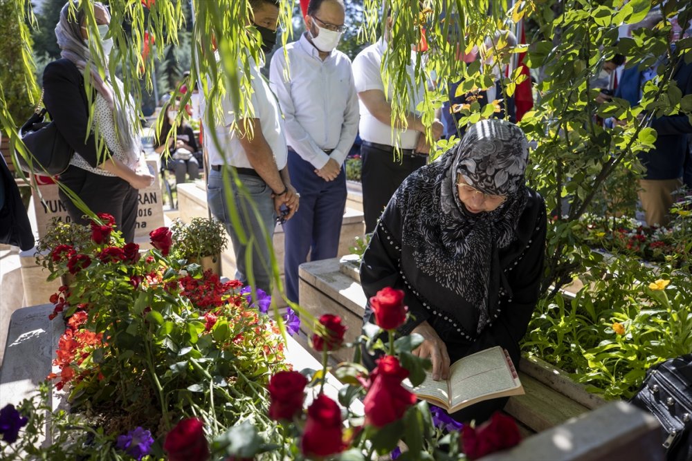 Hollanda, Almanya ve Fransa gibi ülkelerde yaşayan gurbetçiler, şehitlikteki kabri ziyaret ederken, Kur'an-ı Kerim okudu, dua etti.
