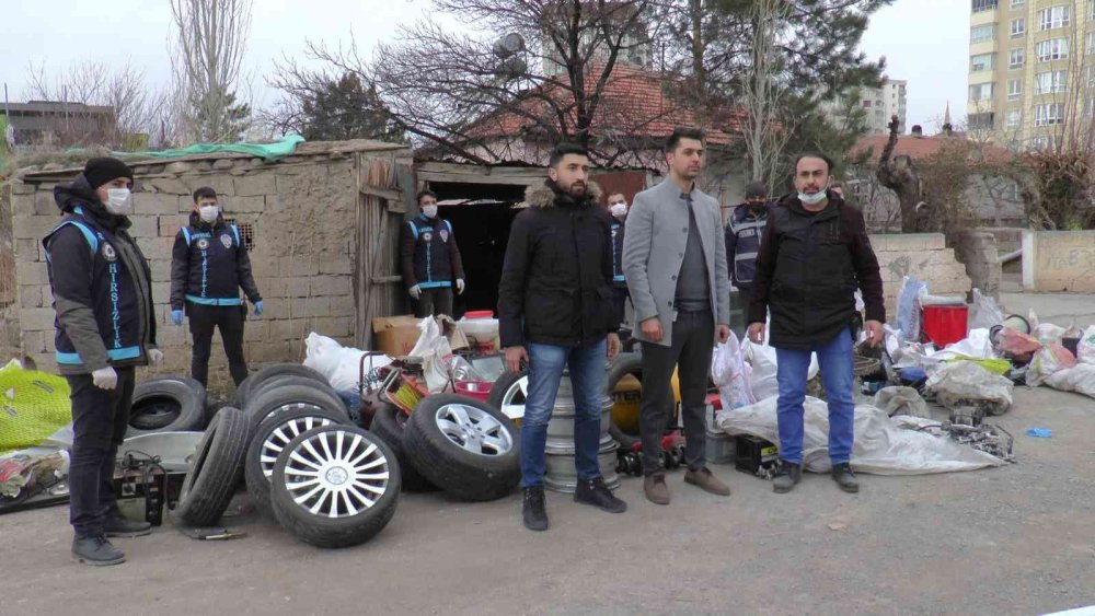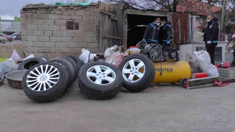 Kayseri İl Emniyet Müdürlüğü Hırsızlık Büro Amirliği tarafından daha önce oto sanayideki iş yerlerinden çalınan malzemelerin bulunmasına yönelik yapılan çalışmalar sonucunda, Melikgazi ilçesine bağlı Yıldırım Beyazıt Mahallesi'nde bulunan bir ikamete baskın düzenlendi. İkamet içerisinde yapılan aramada akü bulunurken, evin müştemilatında yapılan aramalarda ise piyasa değeri ortalama 700 bin TL olan lastik, jant, mekanik malzeme, otomobil farı ve jeneratör gibi çok sayıda materyal bulundu.