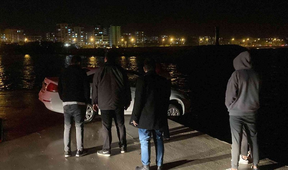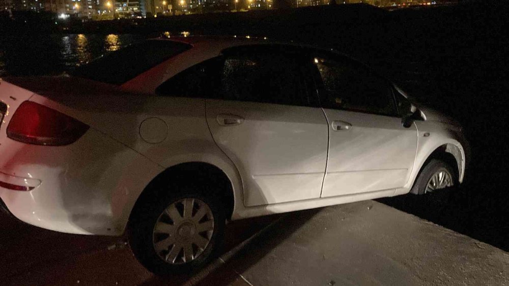 Edinilen bilgiye göre, gece aşırı yağmur sırasında balıkçı barınağının kapısının açık olduğunu fark eden sürücü, arkadaşı ile birlikte otomobille içeri girdi. Barınağın sonuna kadar otomobille giden sürücü, yağmur nedeniyle yolun bittiğini son anda fark etti. Sürücünün frene basmasına rağmen otomobil kayarak denize düşmeye ramak kala askıda kaldı. İki şahıs denize düşmeye ramak kalan otomobilden inerken, balıkçı tayfaları Erdemli Su Ürünleri Kooperatifi Başkanı Yalçın Sakın'a haber verdi. Sakın, izinsiz içeri girenlere hem canlarına bir şey gelmediği için şükretmeleri gerektiğini belirtti hem de tepki gösterdi. Çağrılan çekici ve balıkçı tayfalarının yardımı ile otomobil asılı kaldığı yerden çekilerek kurtarıldı.