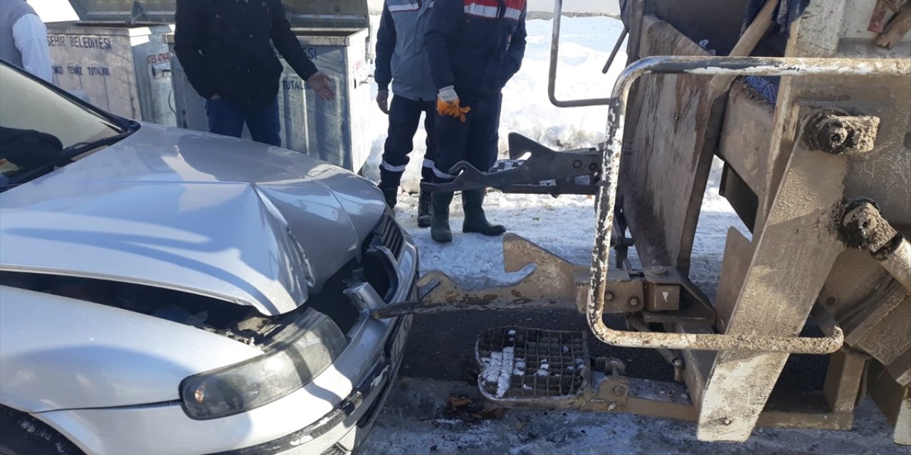 Otomobil Çöp Kamyonuna Çarptı Bir Kişi Yaralandı
