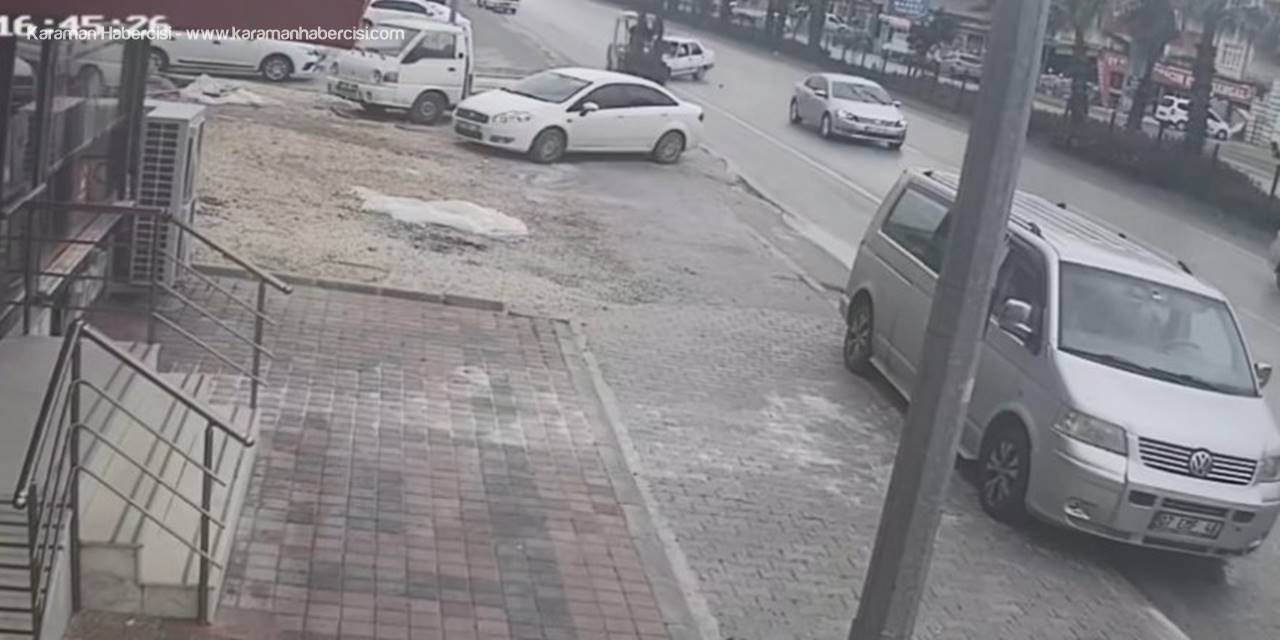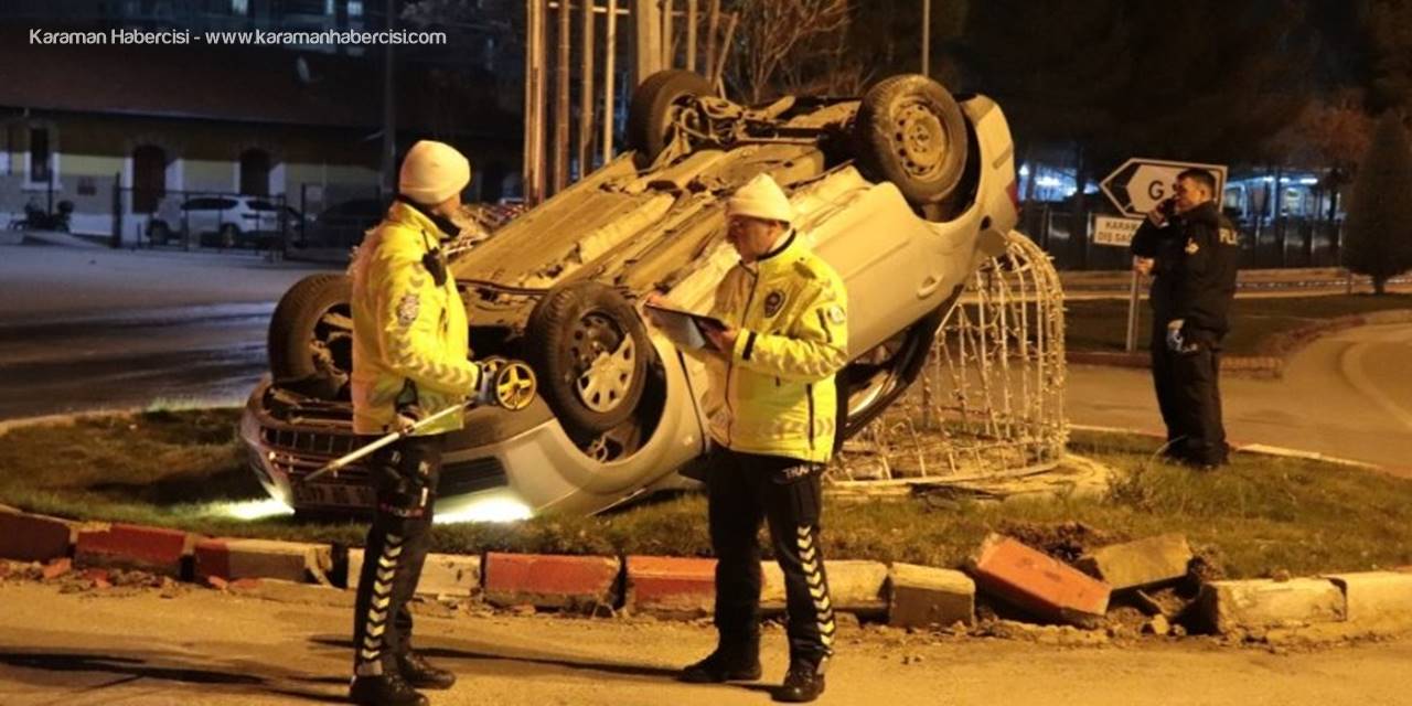 Karaman'da Orta Refuje Çıkan Otomobil Direğe Çarptı
