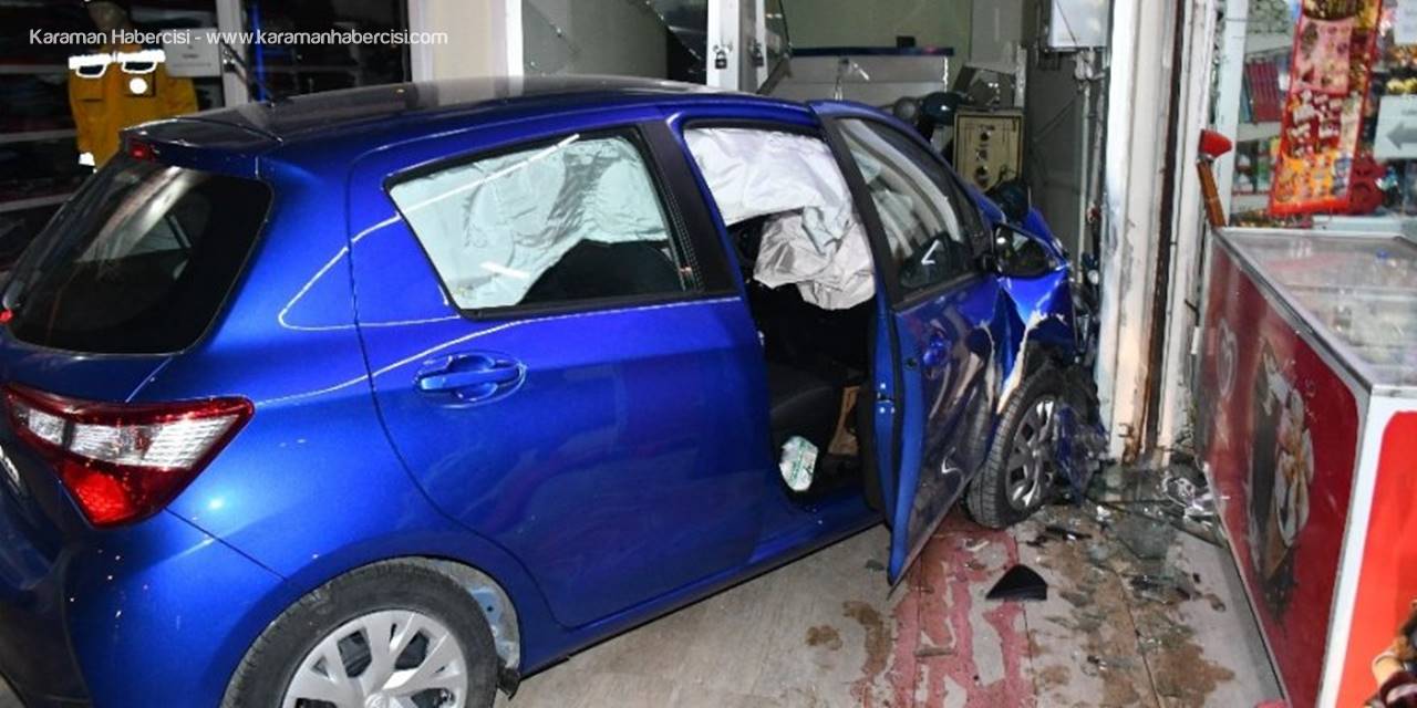 Aksaray’da Kontrolden Çıkan Otomobil Tüpçü Dükkanına Girdi