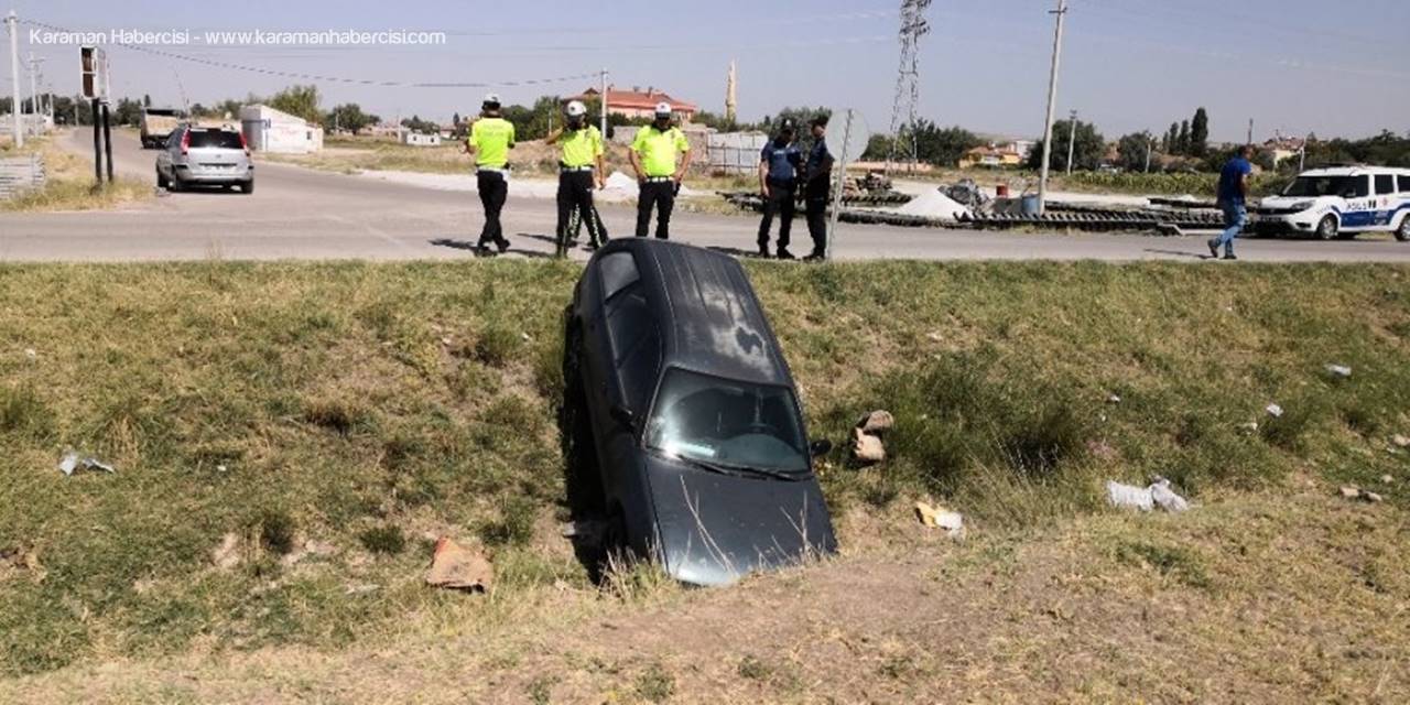Karaman-Mersin Karayolunda Otomobil Şarampole Devrildi