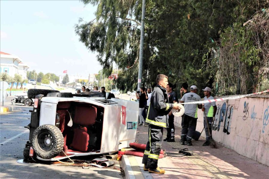 Kaza, öğle saatlerinde Kepez ilçesi Fabrikalar Mahallesi Aslı Çakır Alptekin Caddesi üzerinde meydana geldi. Edinilen bilgiye göre; cadde üzerinde seyir halinde bulunan Aykut C. yönetimindeki 48 SY 013 plakalı aracı cipi ile 3042 sokak üzerinden caddeye çıkmak isteyen Ukraynalı Yulıa K. idaresindeki otomobil kavşak üzerinde çarpıştı. Kazanın şiddeti ile sürücünün kontrolünden çıkan arazi cipi takla atarak yan yattı. Kazayı gören vatandaşlar durumu 112 Acil Çağrı merkezine bildirdi. İhbarın ardından olay yerine gelen sağlık ekipleri cip içerisinde bulunan ve yaralanan sürücü ile yanında bulunan arkadaşını hastaneye kaldırdı.