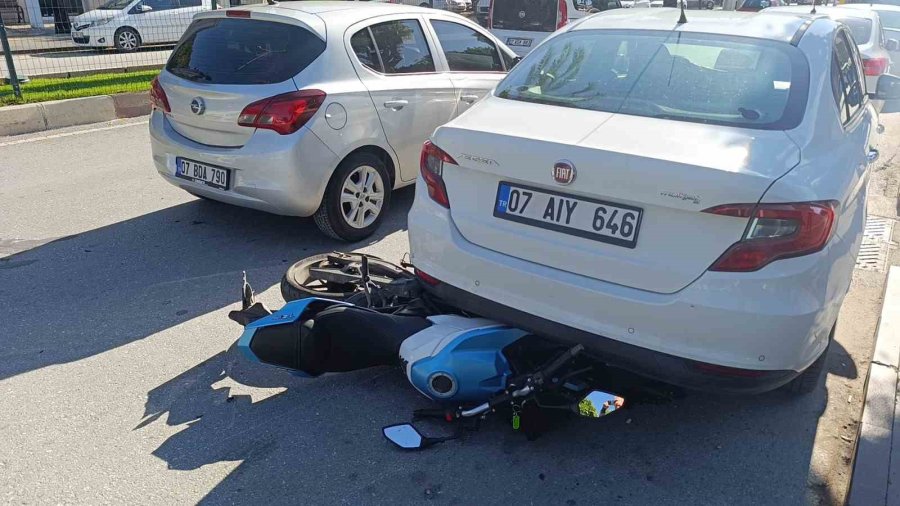 Antalya'nın Manavgat ilçesinde seyir halindeki otomobili geçmek isterken aynasına çarpan motosiklet, yol kenarında park halindeki otomobilin altına girdi. Kazada motosiklet sürücüsü yaralandı.
