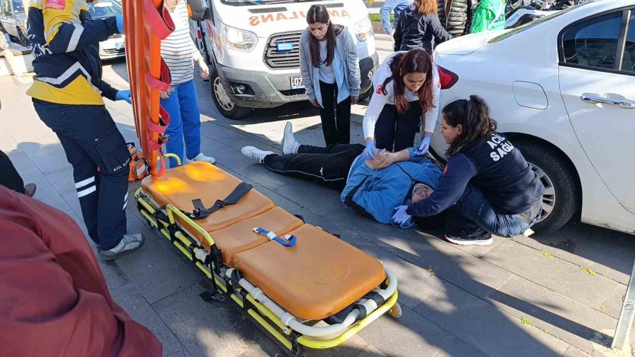 Kaza; Bahçelievler Mahallesi Antalya Caddesinde meydana geldi. Alınan bilgiye göre, Ramazan G. A.'nın kullandığı 07 BUM 045 plakalı motosiklet, aynı istikamette gitmekte olan Ebru Ç'nin kullandığı 07 BDA 790 plakalı Opel marka otomobilin sağından geçmek isterken aynasına çarptıktan sonra devrilerek yol kenarında park halinde bulunan 07 AIY 646 plakalı Fiat marka otomobilin altına girdi.