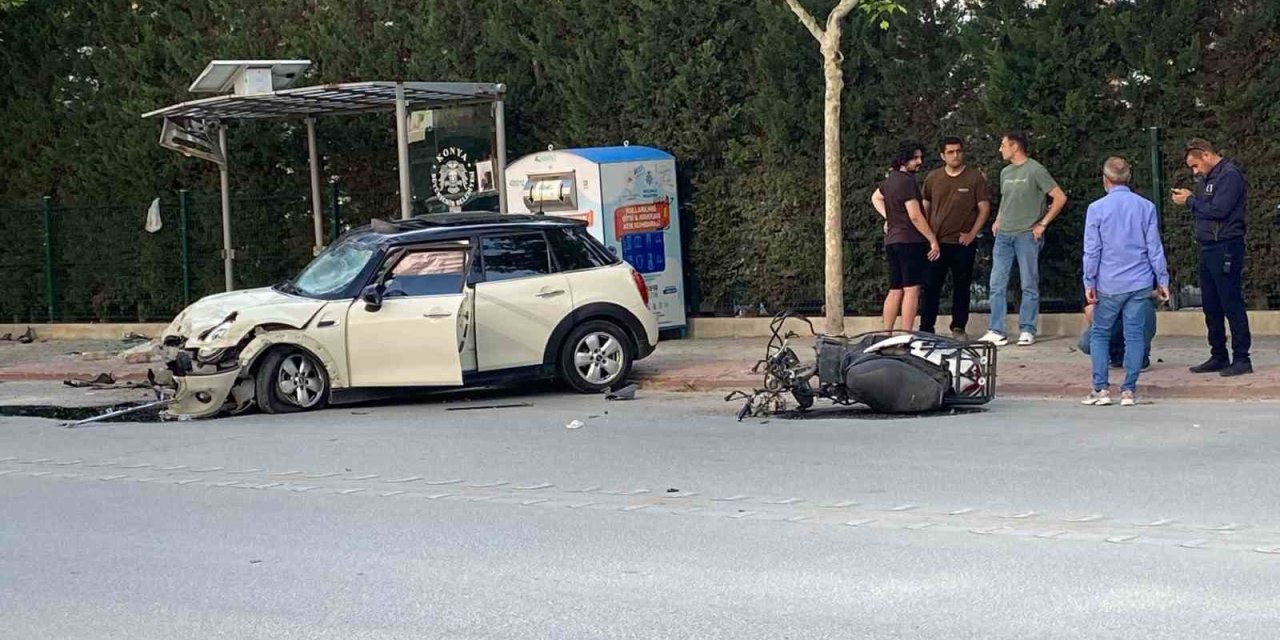 Konya'da kavşağa aşırı hızlı giren otomobil karşı şeride geçerek motosiklete çarptı.