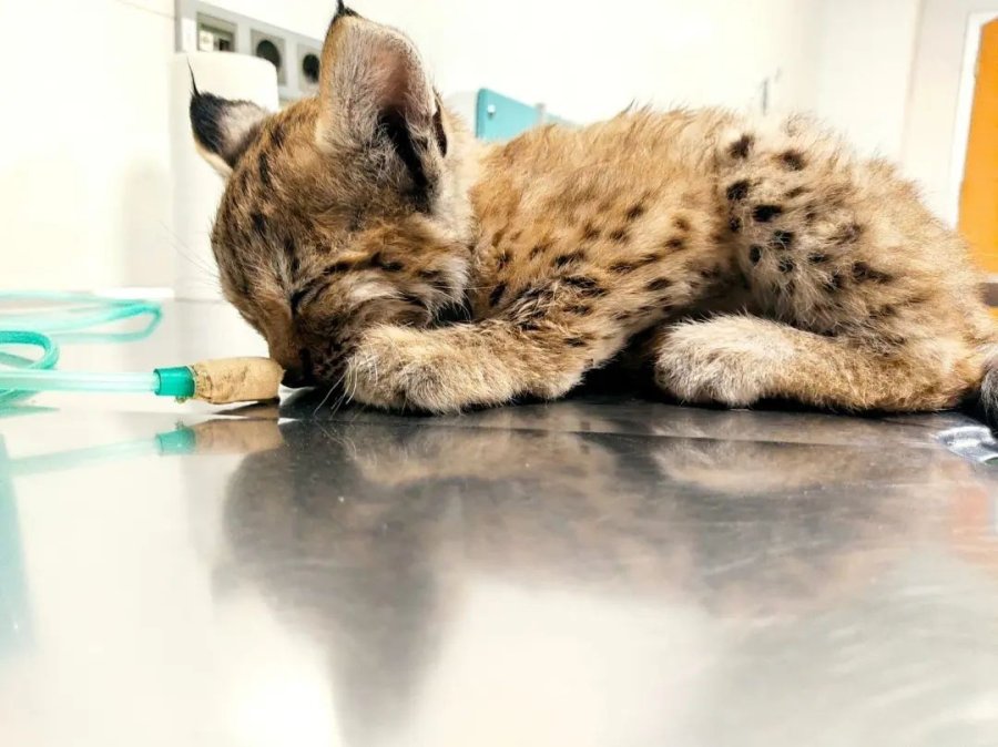 Konya'nın Beyşehir ilçesinde, yol kenarında yaralı halde bulunarak milli parklar ekiplerine teslim edilen yavru vaşak tedavi altına alındı.