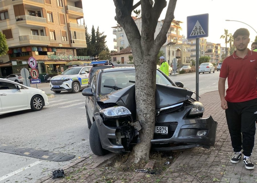 Antalya'nın Gazipaşa ilçesinde alkollü sürücünün direksiyon hakimiyetini kaybettiği otomobil, karşı şeride geçip yol kenarındaki ağaca çarptı.